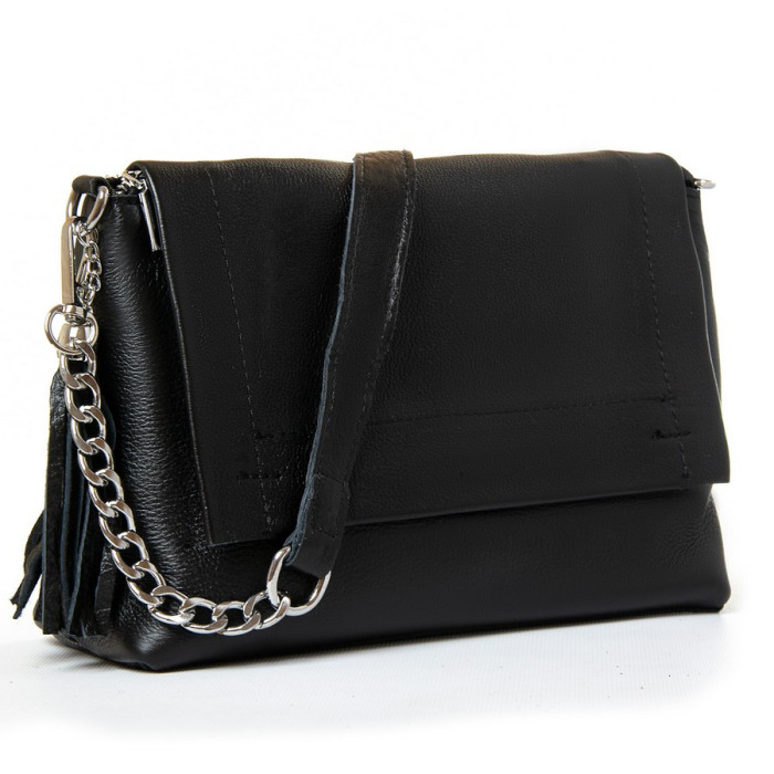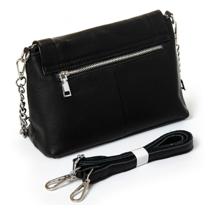Сумка жіноча Alex Rai. Виготовлена із натуральної м'якої шкіри. Під клапаном додатково закривається на блискавку. Усередині знаходиться подвійне відділення, розділене кишенею-перегородкою на блискавці, відкрита кишеня та бічна кишеня на блискавці. На звороті розташована кишеня на блискавці. У комплекті регульований плечовий ремінь та ручка-ланцюжок.