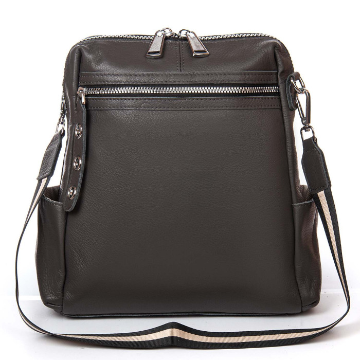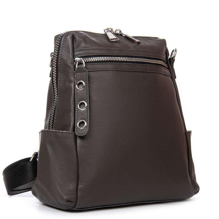 Жіноча сумка-рюкзак Alex Rai. Виготовлена з натуральної м'якої шкіри. Можна носити на плечі на широкому ремені. Закривається на блискавку. Всередині знаходиться основне і додаткове відділення, розділене кишенею-перегородкою на блискавці і кишеня на блискавці. Зовні рюкзака на фасаді і зворотному боці розташовані кишені на блискавці. На торцях рюкзака є невеликі відкриті кишені. Плечові лямки регулюються по довжині.