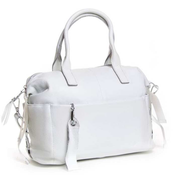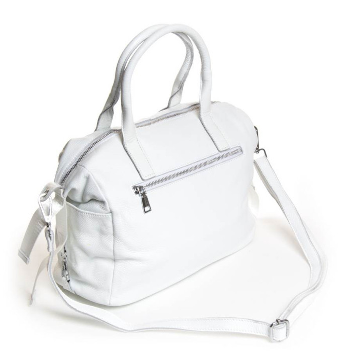 Сумка жіноча Alex Rai. Виготовлена із натуральної м'якої шкіри. Закривається на блискавку. Усередині знаходиться подвійне відділення, розділене кишенею-перегородкою на блискавці, подвійна відкрита кишеня та кишеня на блискавці. Зовні сумки, на фасаді та на звороті розташовані кишені на блискавці. На торцях сумки є невеликі відкриті кишені. У комплекті регульований плечовий ремінь.