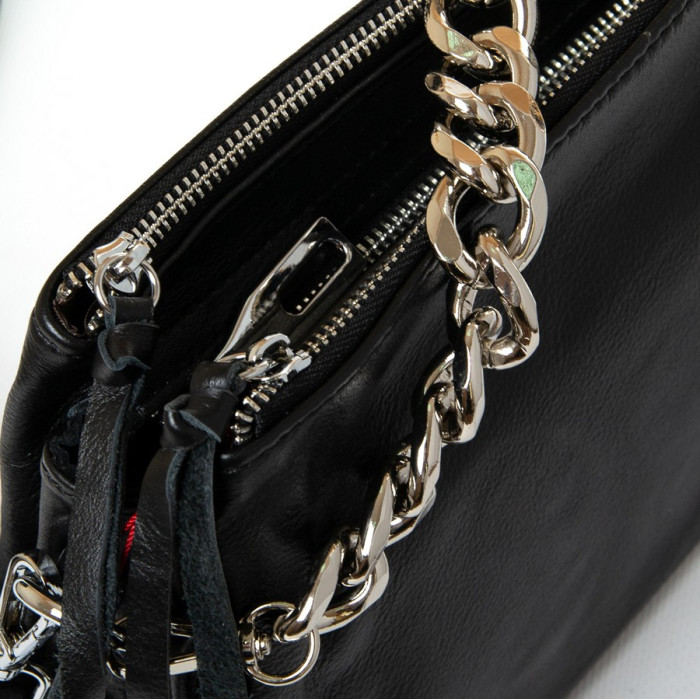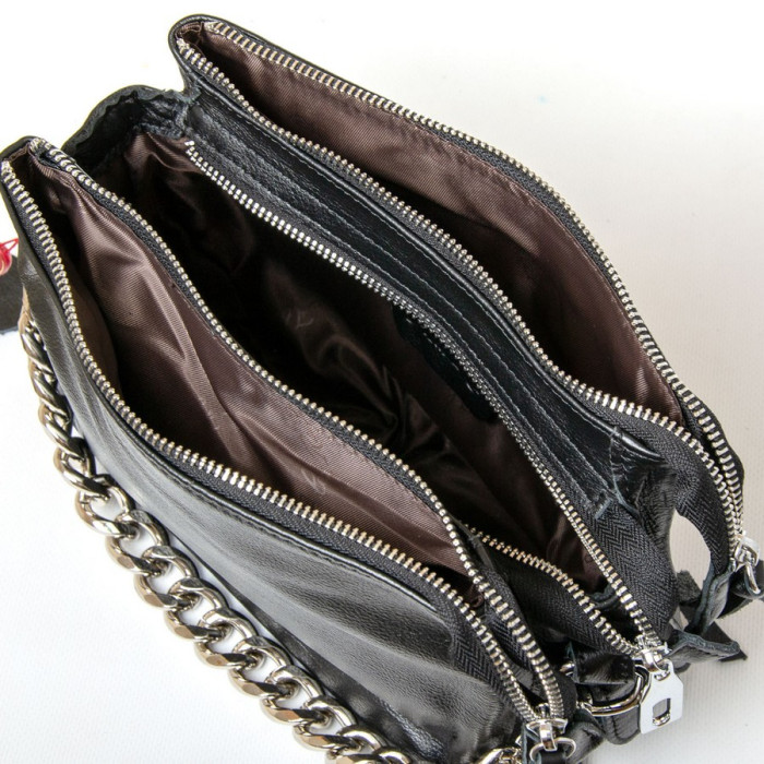Сумка жіноча Alex Rai. Виготовлена із натуральної м'якої шкіри. Три відділення, що закриваються на блискавку. Усередині центрального знаходиться відкрита кишеня і бічна кишеня на блискавці. На звороті розташована кишеня на блискавці. У комплекті регульований плечовий ремінь та ручка-ланцюжок.