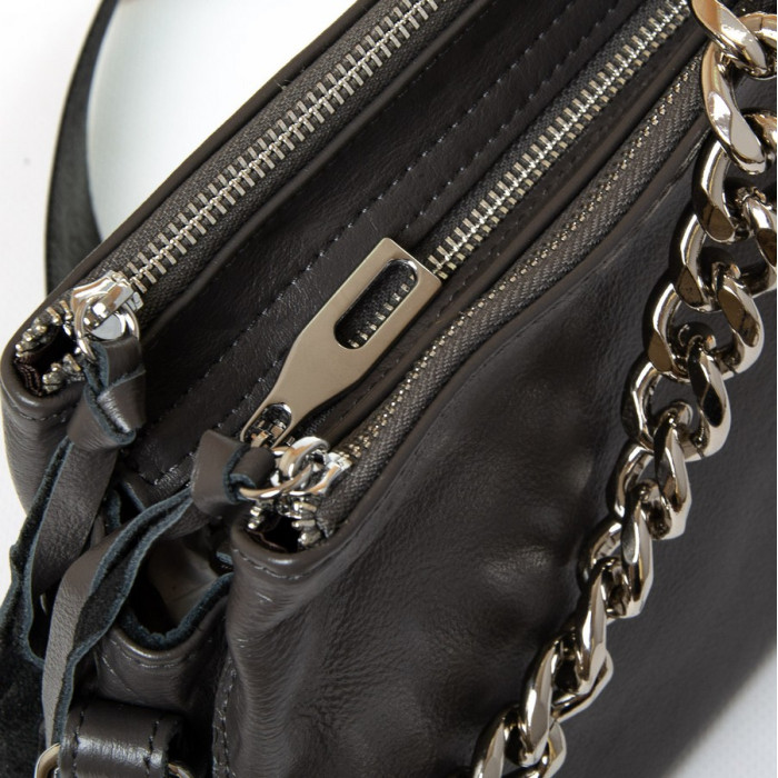 Сумка жіноча Alex Rai. Виготовлена із натуральної м'якої шкіри. Три відділення, що закриваються на блискавку. Усередині центрального знаходиться відкрита кишеня і бічна кишеня на блискавці. На звороті розташована кишеня на блискавці. У комплекті регульований плечовий ремінь та ручка-ланцюжок.