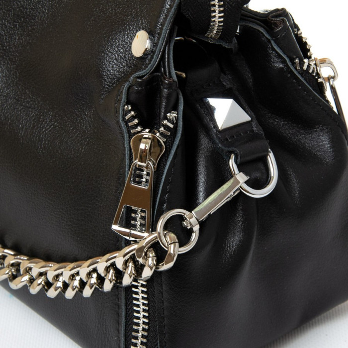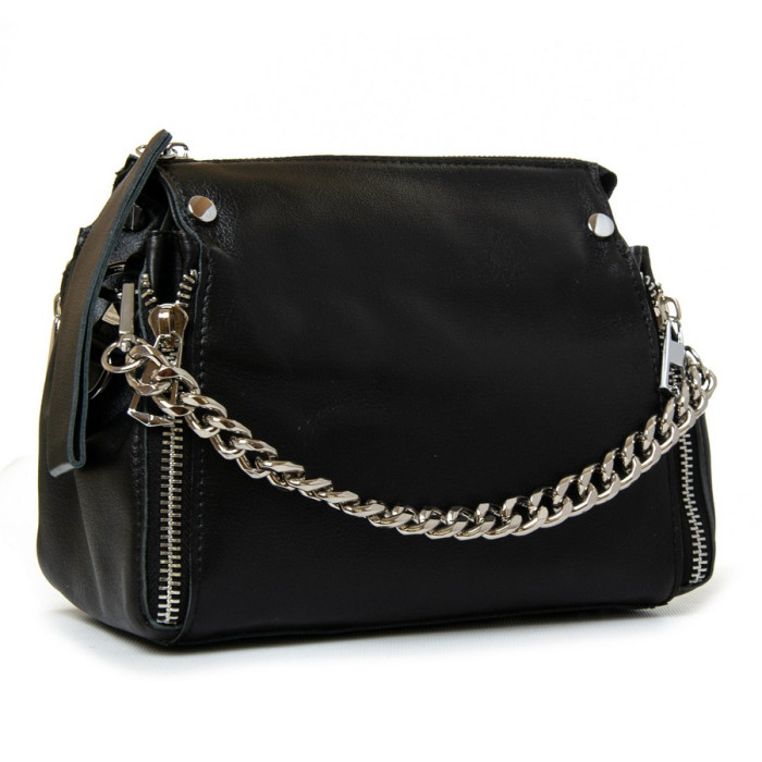 Сумка жіноча Alex Rai. Виготовлена із натуральної м'якої шкіри. Закриється на блискавку. Усередині знаходиться подвійне відділення, розділене кишенею-перегородкою на блискавці, відкрита кишеня та бічна кишеня на блискавці. На звороті розташована кишеня на блискавці. У комплекті регульований плечовий ремінь та ручка-ланцюжок.