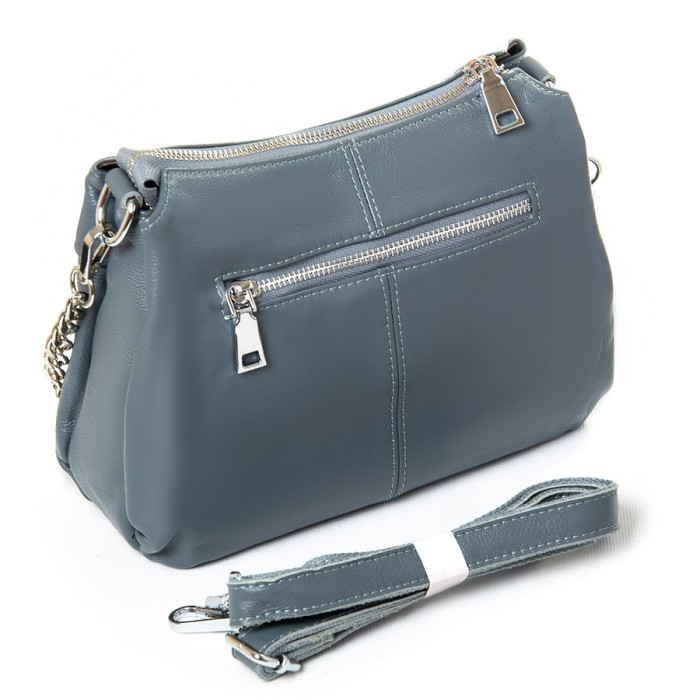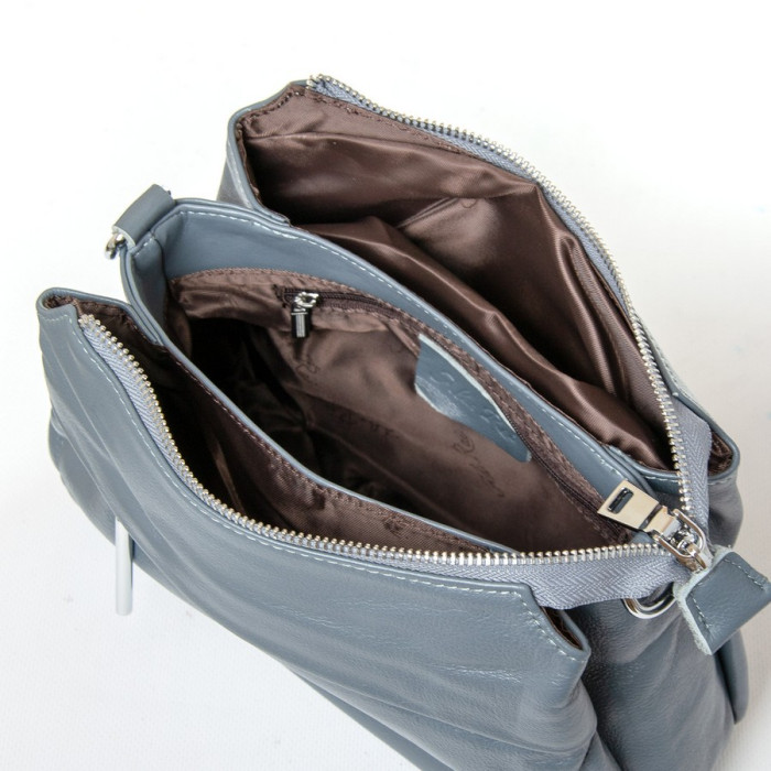 Сумка жіноча Alex Rai. Виготовлена із натуральної м'якої шкіри. Три відділення, що закриваються на загальну блискавку. Усередині центрального відділення знаходиться відкрита кишеня та бічна кишеня на блискавці. Зовні сумочки на фасаді та зворотній стороні є кишені на блискавці. У комплекті регульований плечовий ремінь та зйомна ручка.