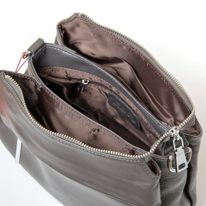 Сумка жіноча Alex Rai. Виготовлена із натуральної м'якої шкіри. Три відділення, що закриваються на загальну блискавку. Усередині центрального відділення знаходиться відкрита кишеня та бічна кишеня на блискавці. Зовні сумочки на фасаді та зворотній стороні є кишені на блискавці. У комплекті регульований плечовий ремінь та зйомна ручка.