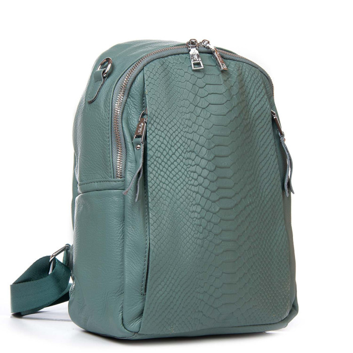 Жіноча сумка-рюкзак Alex Rai. Виготовлена ​​із натуральної м'якої шкіри. Можна носити на плечі широкому ремені. Закривається на блискавку. Усередині знаходиться основне та додаткове відділення, розділене кишенею-перегородкою на блискавці, відкрита кишеня та кишеня на блискавці. Зовні рюкзака на фасаді та зворотній стороні розташовані кишені на блискавці. На торцях рюкзака є маленькі відкриті кишені. Плечові лямки регулюються по довжині.