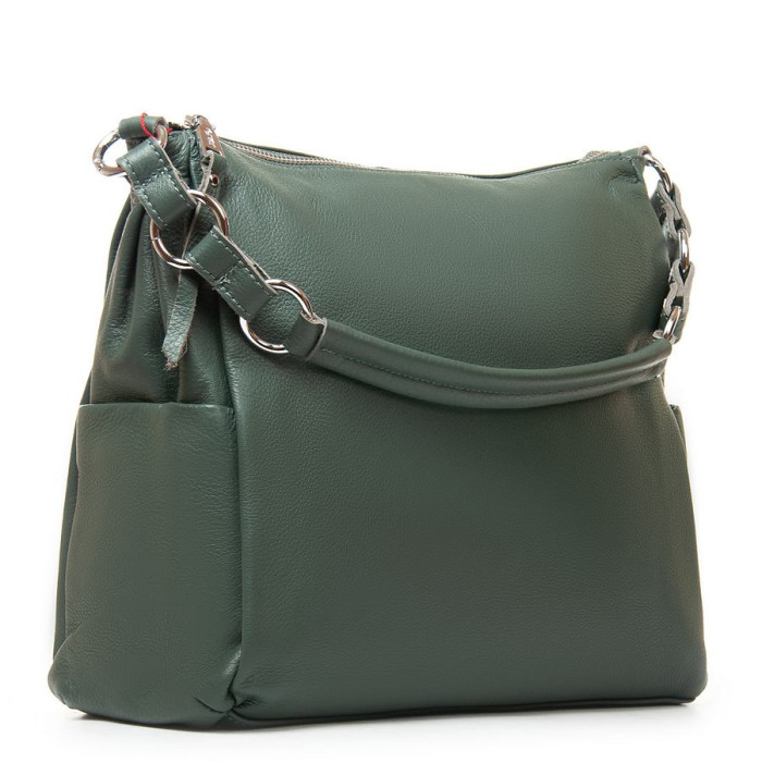 Жіноча сумка Alex Rai. Виготовлена із натуральної м'якої шкіри. Закривається на блискавку. Усередині знаходиться подвійне відділення, розділене кишенею-перегородкою на блискавці, відкрита бічна кишеня та кишеня на блискавці. Зовні сумки на звороті знаходяться кишеню на блискавці, а на торцях невеликі відкриті кишені. Ущільнене дно.