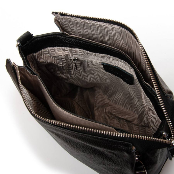 Сумка жіноча Alex Rai. Виготовлена із натуральної м'якої шкіри. Усередині сумки є три відділення, які закриваються на загальну блискавку. Усередині центрального відділення знаходиться бічна відкрита кишеня та кишеня на блискавці. Зовні сумки на звороті та торцях розташовані кишені на блискавці. Дно сумки ущільнене, із металевими ніжками.
