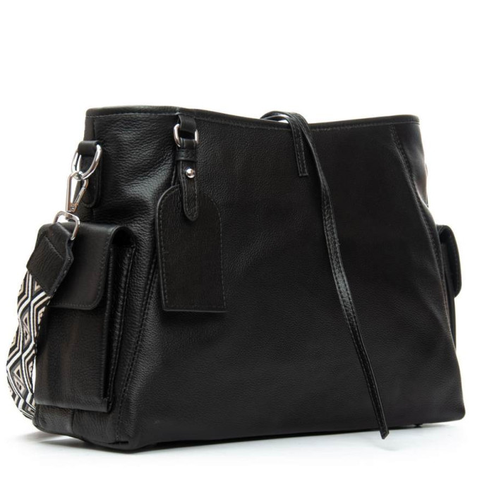 Застібається на блискавку. Всередині знаходиться подвійне відділення, розділене кишенею-перегородкою на блискавці, відкрита кишеня і бічна кишеня на блискавці. Зовні сумки на зворотному боці є велика кишеня на блискавці. На торцях сумки розташовані невеликі кишені під клапанами на магнітній кнопці. Ущільнене дно на металевих ніжках.
