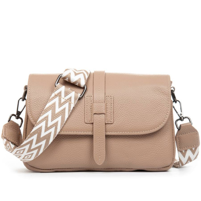 У комплекті регульований шкіряний плечовий ремінь і широкий текстильний ремінь-стрічка.