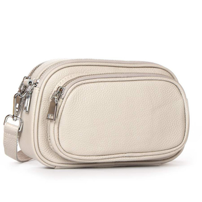 Жіноча сумочка Alex Rai. Виготовлена ​​із натуральної м'якої шкіри. Два відділення, що закриваються на блискавці. Усередині відділень є бічна кишеня на блискавці та відкрита кишеня. Зовні сумки на фасаді та зворотній стороні знаходяться кишені на блискавці.