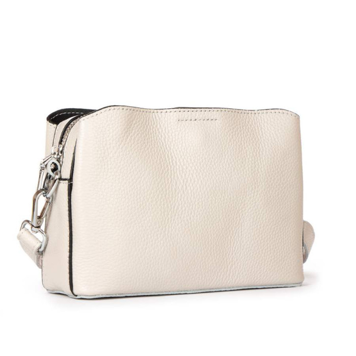 Жіноча сумочка Alex Rai. Виготовлена із натуральної м'якої шкіри. Фасад та зворотний бік однакові. Три відділення: центральне закривається на блискавку, а бічні – на магнітні кнопки. Усередині центрального відділення є бічна кишеня на блискавці та відкрита кишеня. Жорстке дно.