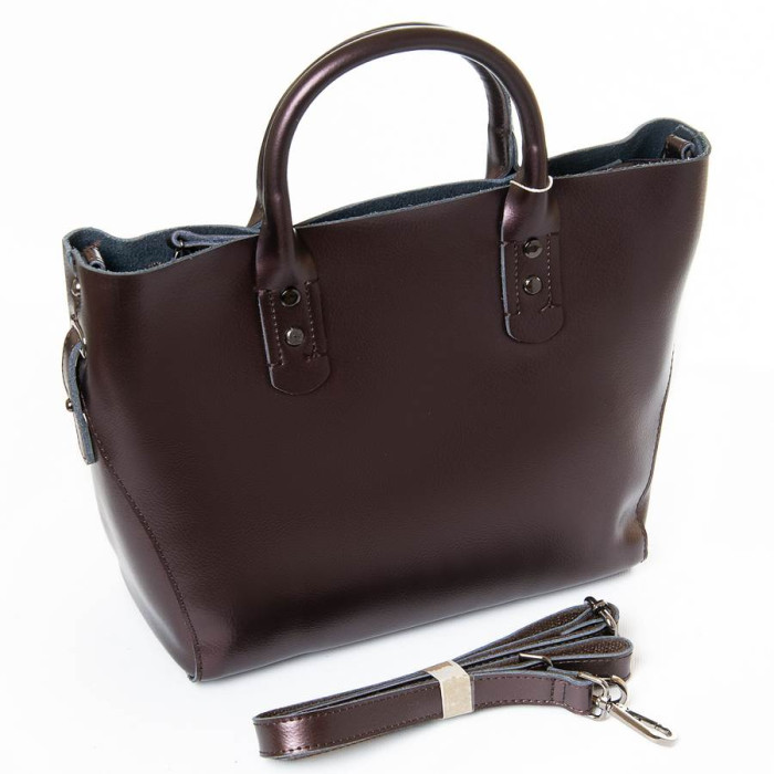 Жіноча сумка з натуральної шкіри. Закривається на блискавку. Усередині сумки подвійне відділення, розділене кишенею-перегородкою на блискавці, бічна кишеня на блискавці і відкрита подвійна кишеня. На зворотному боці сумки кишеня на блискавці. У комплекті регульований плечовий ремінь.