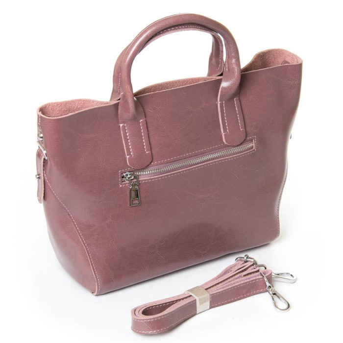 Жіноча сумка з натуральної шкіри. Закривається на блискавку. Усередині сумки подвійне відділення, розділене кишенею-перегородкою на блискавці, бічна кишеня на блискавці і відкрита подвійна кишеня. На зворотному боці сумки кишеня на блискавці. У комплекті регульований плечовий ремінь.