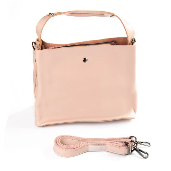 Жіноча шкіряна сумка. Виготовлена з натуральної щільної шкіри. Закривається на блискавку. Всередині знаходиться одне відділення, подвійна відкрита кишеня і кишеня на блискавці на внутрішніх стінках сумки. Сумка з жорстким дном на металевих ніжках. У комплекті регульований плечовий ремінь.