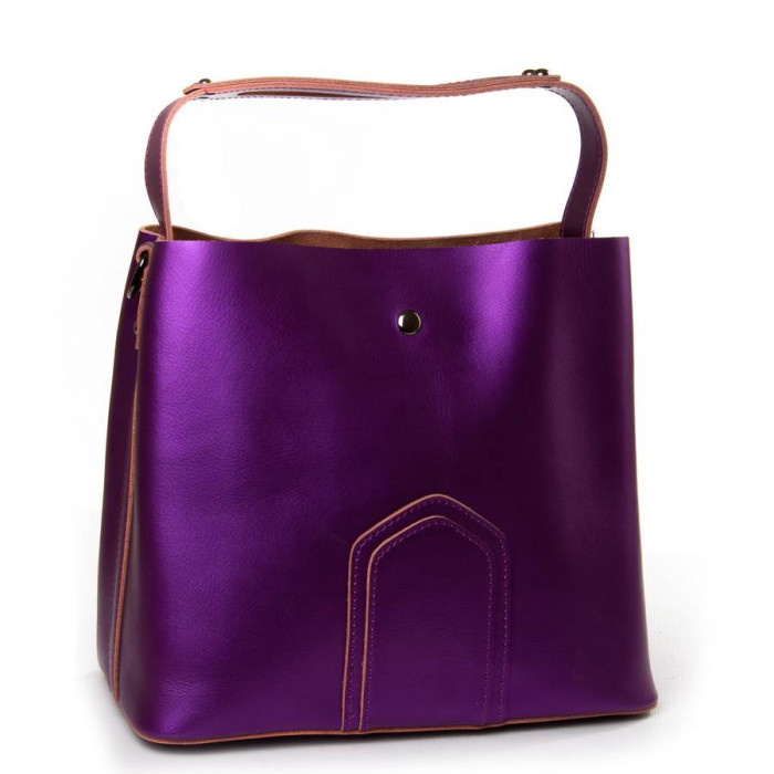 Жіноча шкіряна сумка. Виготовлена з натуральної щільної шкіри. Закривається на блискавку. Всередині знаходиться одне відділення, подвійна відкрита кишеня і кишеня на блискавці на внутрішніх стінках сумки. Сумка з жорстким дном на металевих ніжках. У комплекті регульований плечовий ремінь.