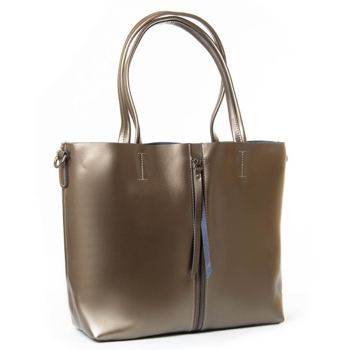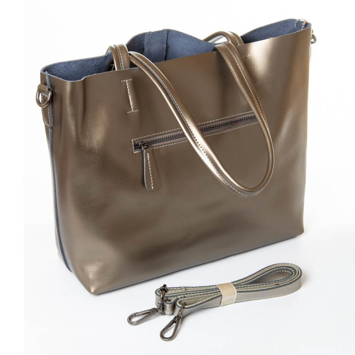 Жіноча сумка з натуральної шкіри. Закривається на блискавку. Усередині сумки подвійне відділення, розділене кишенею-перегородкою на блискавці, бічна кишеня на блискавці і відкрита подвійна кишеня. На зворотному боці сумки кишеня на блискавці. У комплекті регульований плечовий ремінь.