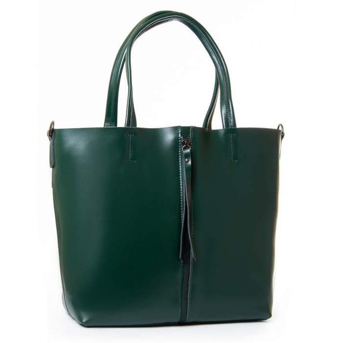 Жіноча сумка з натуральної шкіри. Закривається на блискавку. Усередині сумки подвійне відділення, розділене кишенею-перегородкою на блискавці, бічна кишеня на блискавці і відкрита подвійна кишеня. На зворотному боці сумки кишеня на блискавці. У комплекті регульований плечовий ремінь.