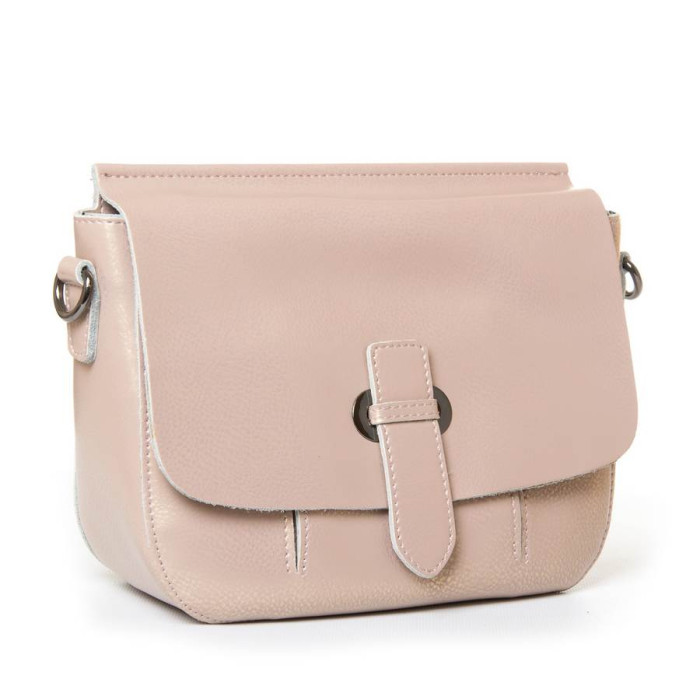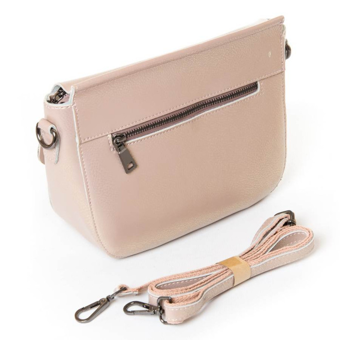Жіноча шкіряна сумочка. Виготовлена із натуральної щільної шкіри. Під клапаном додатково закривається на блискавку. Усередині знаходиться подвійне відділення, розділене кишенею-перегородкою на блискавці, відкрита бічна кишеня та кишеня на блискавці. На звороті знаходиться кишеня на блискавці, а на фасаді під клапаном відкрита кишеня. У комплекті регульований плечовий ремінь.
