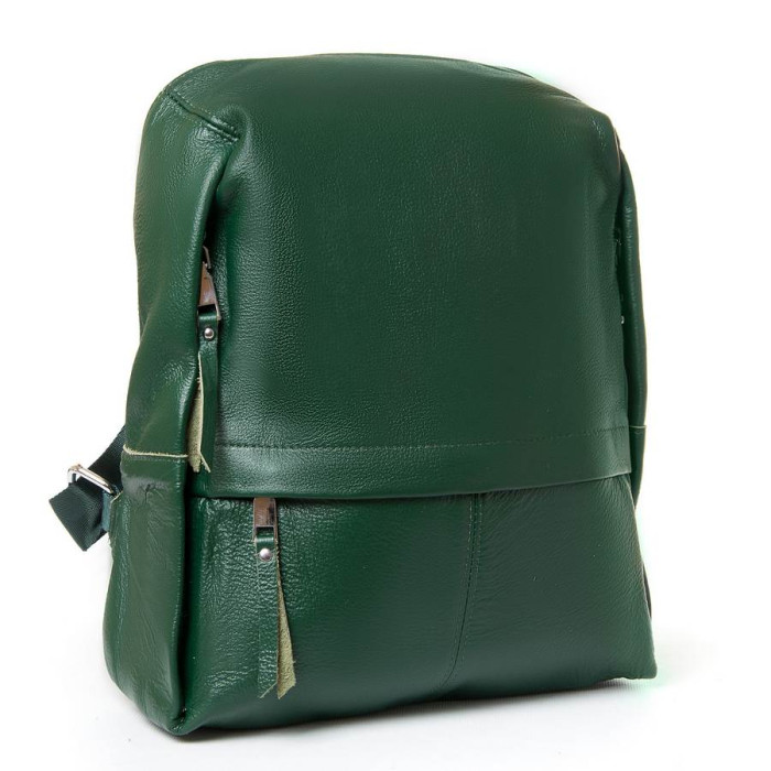 Жіночий шкіряний рюкзак. Виготовлений з натуральної м'якої шкіри. Закривається на блискавку. Усередині знаходиться основне та додаткове відділення, розділене кишенею-перегородкою на блискавці, велика відкрита кишеня та кишеня на блискавці. Зовні рюкзака на фасаді та на звороті розташовані кишені на блискавці. Плечові лямки регулюються по довжині.