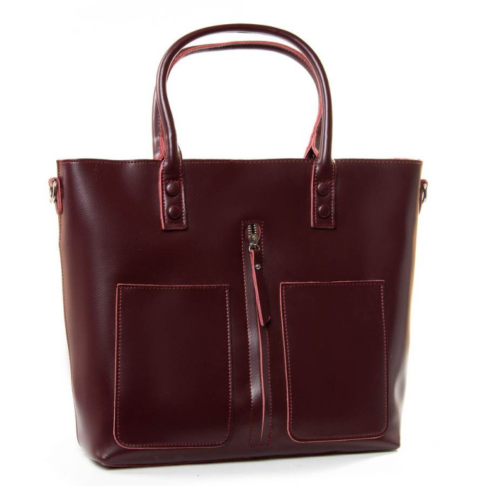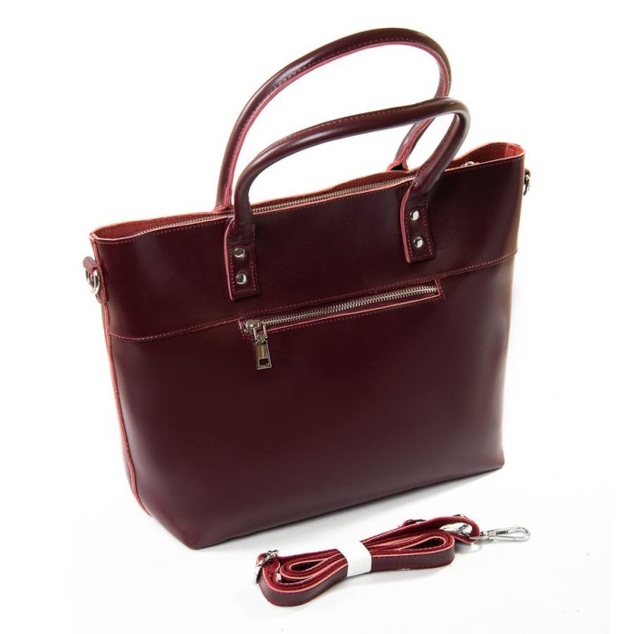 Жіноча сумка з натуральної шкіри. Закривається на блискавку. Усередині сумки подвійне відділення, розділене кишенею-перегородкою на блискавці, бічна кишеня на блискавці і відкрита подвійна кишеня. На зворотному боці сумки кишеня на блискавці. На фасаді дві відкриті кишеньки. У комплекті регульований плечовий ремінь.