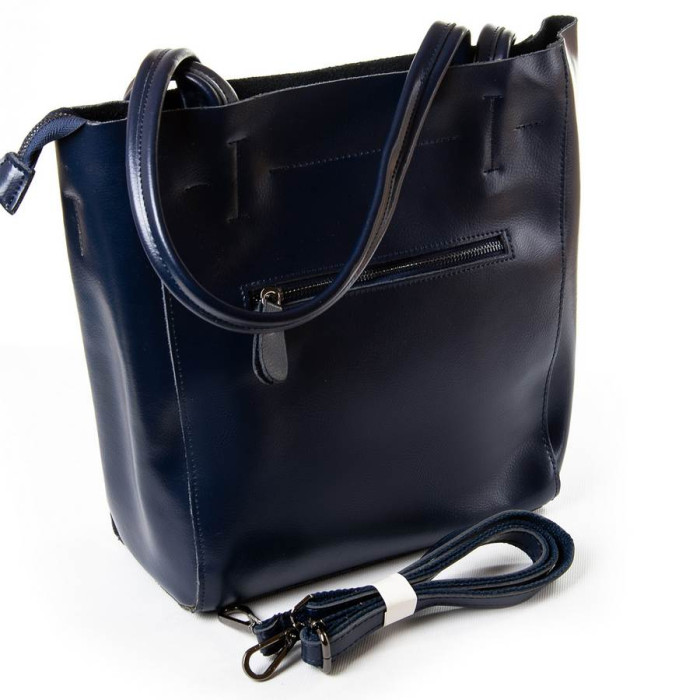 Жіноча сумка. Виготовлена із натуральної шкіри. Закривається на блискавку. Усередині знаходиться подвійне відділення, розділене кишенею-перегородкою на блискавці, подвійна відкрита кишеня та кишеня на блискавці на внутрішніх стінках сумки. На звороті є кишеня на блискавці. Сумка має тверде дно. У комплекті регульований плечовий ремінь.