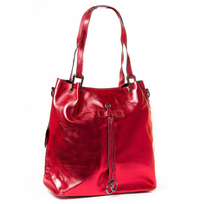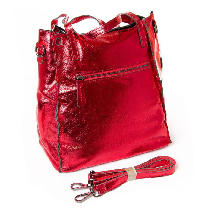 Жіноча шкіряна сумочка. Виготовлена із м'якої натуральної шкіри. Закривається на блискавку. Усередині знаходиться подвійне відділення, розділене кишенею-перегородкою на блискавці, відкрита кишеня та кишеня на блискавці. На звороті знаходиться кишеня на блискавці. У комплекті регульований плечовий ремінь.