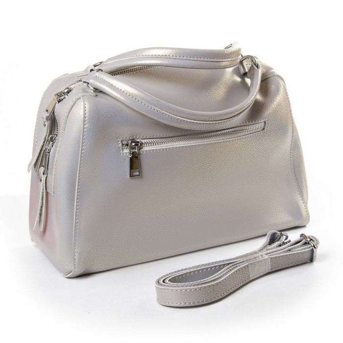 Жіноча сумка. Виготовлена із натуральної щільної шкіри. Закривається на блискавку. Усередині знаходиться основне та додаткове відділення розділене кишенею-перегородкою на блискавці, відкрита кишеня та бічна кишеня на блискавці. На фасаді та на звороті є кишені на блискавці. У комплекті регульований плечовий ремінь.