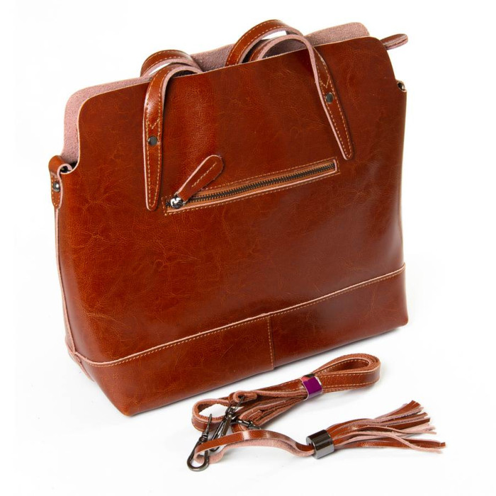 Жіноча сумка PODIUM. Виготовлена з натуральної шкіри. Закривається на блискавку. Усередині знаходиться подвійне відділення, розділене кишенею-перегородкою на блискавці, подвійна відкрита кишеня і кишеня на блискавці. Зовні сумки, на зворотному боці розташована кишеня на блискавці. Дно з металевими ніжками. У комплекті регульований плечовий ремінь.
