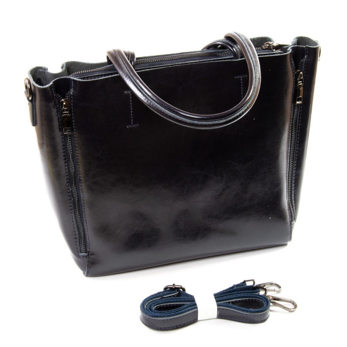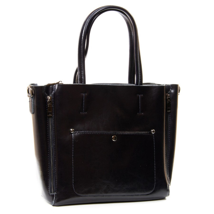 Жіноча сумка. Виготовлена із натуральної щільної шкіри. Закривається на блискавку. Усередині знаходиться подвійне відділення, розділене кишенею-перегородкою на блискавці, подвійна відкрита кишеня та кишеня на блискавці. Зовні сумки на лицьовій стороні знаходиться кишеня на магнітній кнопці. У комплекті регульований плечовий ремінь.