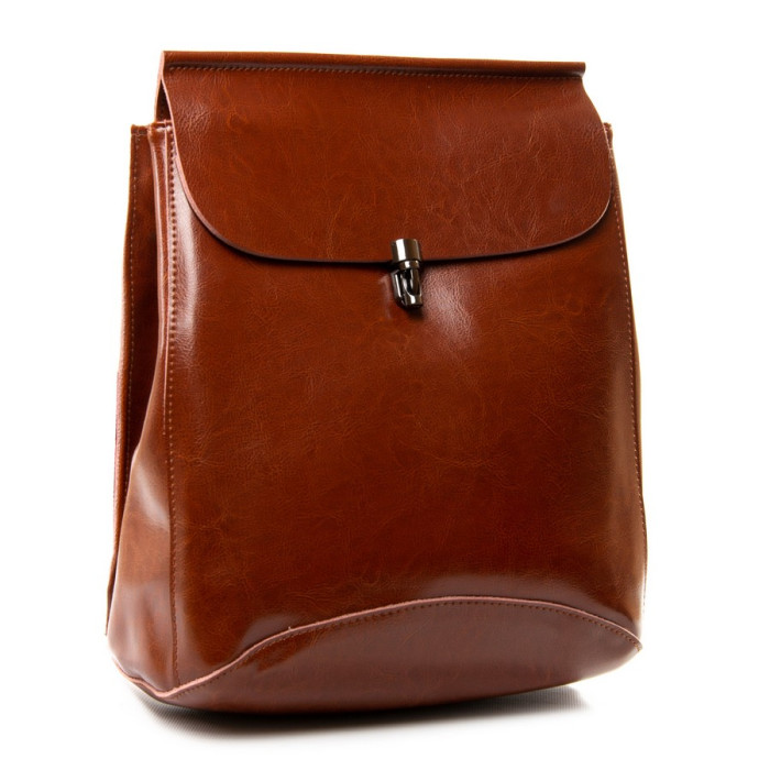 Жіночий шкіряний рюкзак. Виготовлений із натуральної щільної шкіри. Можна носити на плечі на регульованому ремені. Під клапаном додатково закривається на блискавку. Усередині знаходиться основне і додаткове відділення, розділене кишенею-перегородкою на блискавці, відкрита кишеня і кишеня на блискавці. Зовні рюкзака на зворотному боці розташована кишеня на блискавці. Плечові лямки регулюються за довжиною.