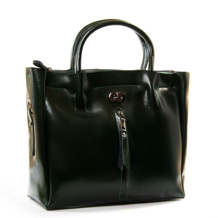 Жіноча сумка. Виготовлена з натуральної шкіри. Закривається на блискавку. Усередині знаходиться подвійне відділення, розділене кишенею-перегородкою на блискавці, подвійна відкрита кишеня і кишеня на блискавці на внутрішніх стінках сумки. На зворотному та лицьовому боці є кишені на блискавці. Сумка має жорстке дно. У комплекті регульований плечовий ремінь.