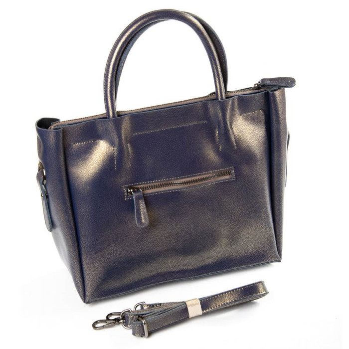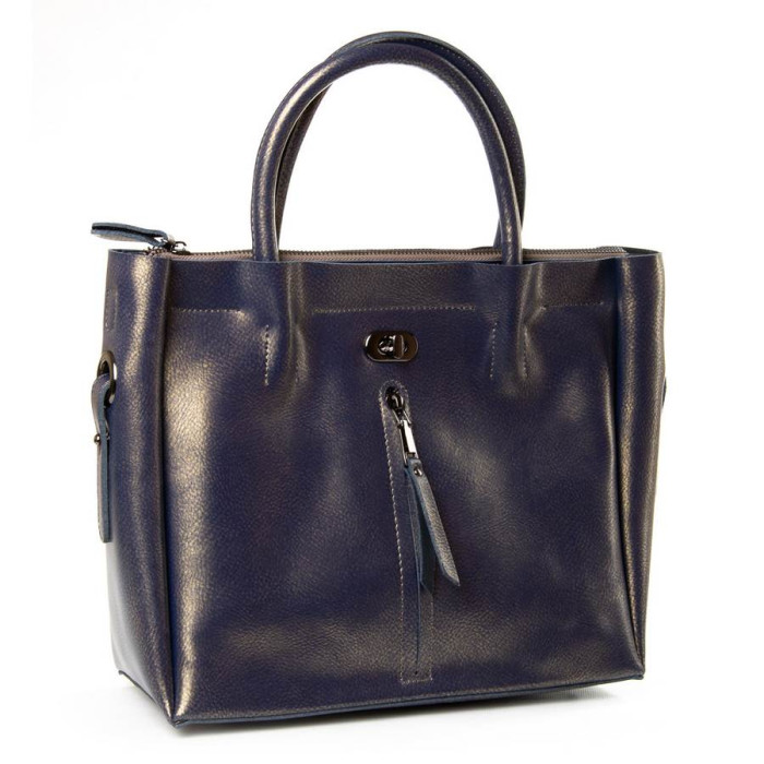 Жіноча сумка. Виготовлена з натуральної шкіри. Закривається на блискавку. Усередині знаходиться подвійне відділення, розділене кишенею-перегородкою на блискавці, подвійна відкрита кишеня і кишеня на блискавці на внутрішніх стінках сумки. На зворотному та лицьовому боці є кишені на блискавці. Сумка має жорстке дно. У комплекті регульований плечовий ремінь.