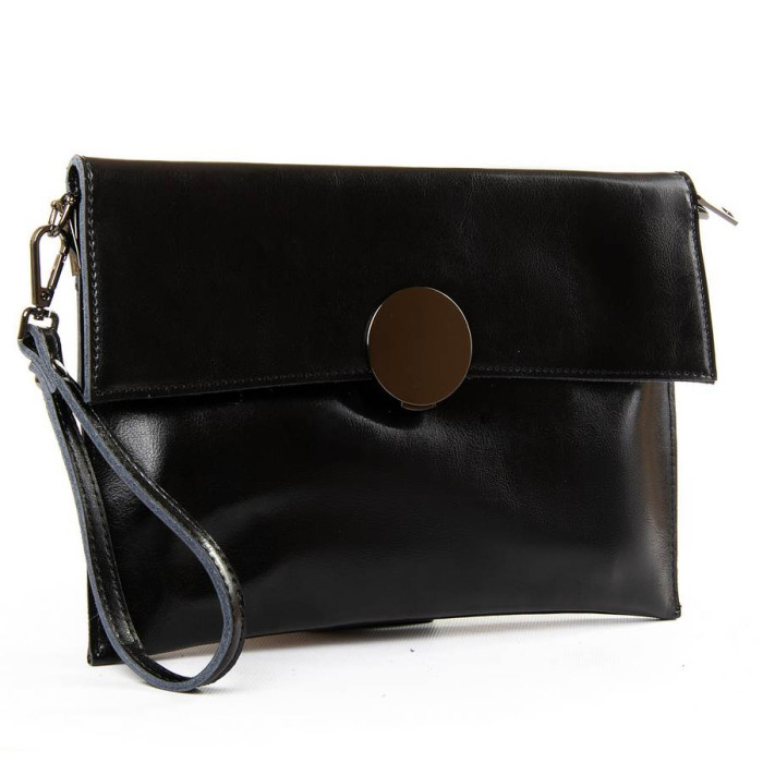 Жіноча сумка-клатч. Виготовлена з натуральної щільної шкіри. Закривається на замок. Усередині знаходиться подвійне відділення, розділене кишенею-перегородкою на блискавці, відкрита кишеня і кишеня на блискавці на внутрішніх стінках сумки. На зворотному боці розташована кишеня на блискавці. У комплекті ремінець для кисті та регульований плечовий ремінь.