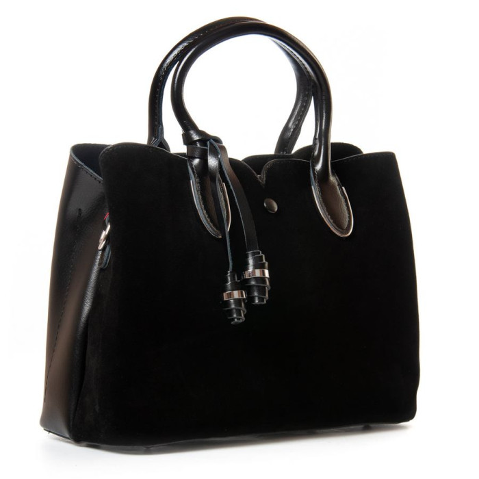 Сумка жіноча Alex Rai. Виготовлена з натуральної щільної шкіри та замші. Три відділення: центральне закривається на блискавку, а бічні магнітні кнопки. Всередині центрального відділення є відкрита кишеня та бічна кишеня на блискавці. Жорстке дно із металевими ніжками.