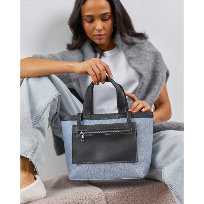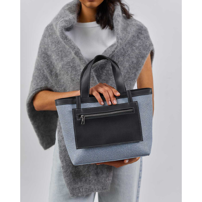 Жіноча сумка 10902, виробник WeLassie, колір синій з чорним, матеріал екошкіра високої якості. Сумка відкривається за допомогою застібки-блискавки. Усередині сумка на підкладці, має дві кишені: відкриту і на застібці. Зовні є кишеня для дрібних предметів. Сумку зручно носити на плечі. Джинсова екошкіра схожа на тканину.