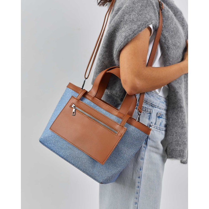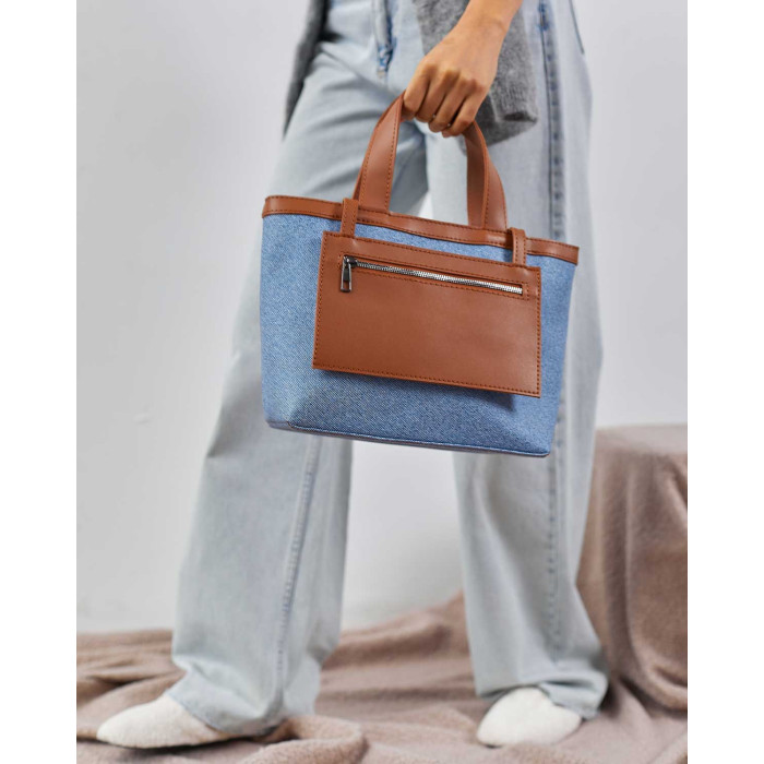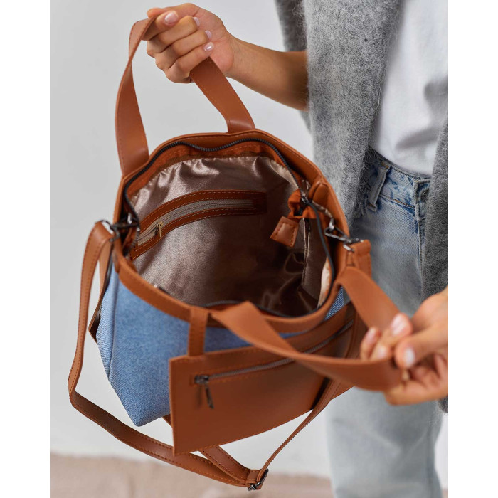 Жіноча сумка 10901, виробник WeLassie, колір синій з рудим, матеріал екошкіра високої якості. Сумка відкривається за допомогою застібки-блискавки. Усередині сумка на підкладці, має дві кишені: відкриту і на застібці. Зовні є кишеня для дрібних предметів. Сумку зручно носити на плечі. Джинсова екошкіра схожа на тканину.