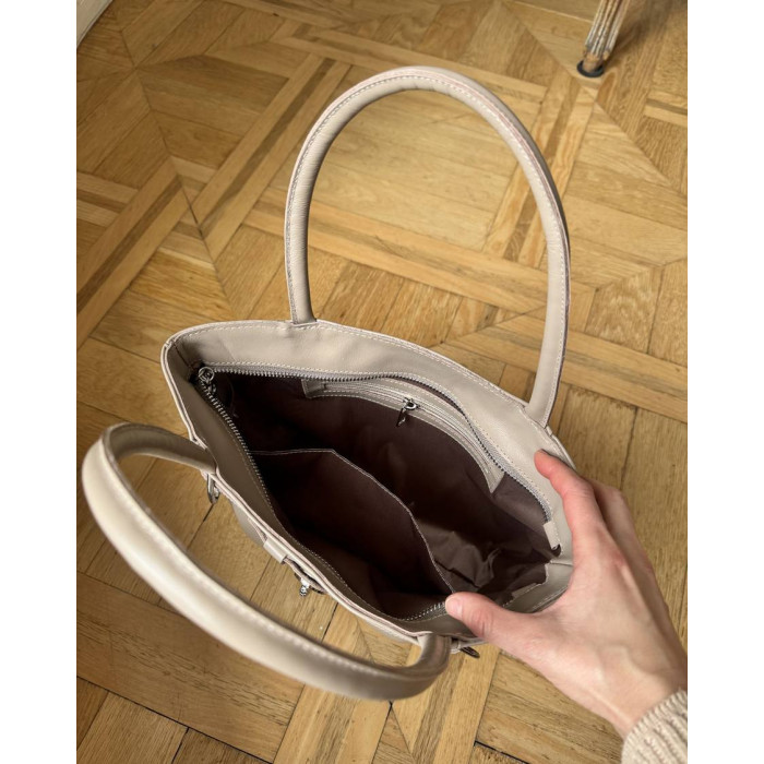 Жіноча сумка K7079, виробник Україна, сумки в наявності на оптовому складі 7 км Одеса, колір бежевий, матеріал сумки натуральна шкіра, замша. Сумка відкривається за допомогою блискавки. Усередині сумка має одну відкриту кишеню і на змійці. Сумка має ручку 15 см (від верху сумки).