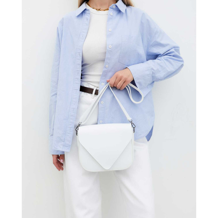 Жіноча сумка клатч 67600 колір білий з екошкіри високої якості (матеріал схожий на шкіру). Сумка відкривається за допомогою застібки та магніта. Всередині сумка на підкладці, має дві кишені: відкриту та на застібці. Зовні є кишеня для дрібних предметів. У комплекті є плечовий ремінь, який регулюється під різну довжину, що дозволяє носити сумку як кросбоді. Максимальна довжина плечового ременя 135 см.