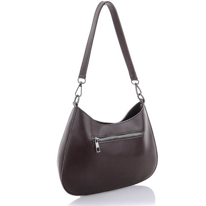 Сумка жіноча 66105 від виробника «Welassie» Україна, колір шоколадний, матеріал сумки екошкіра високої якості. Сумка відкривається за допомогою блискавки. Сумка на щільній, якісній підкладці. Всередині має дві кишені: відкрита і на блискавці. В комплекті два ременя: короткий і довгий плечовий. Кожен ремінь окремо знімається, що дозволяє носити сумку в руці, на згині ліктя і через плече. Довжина короткого ременя 40см., довгого 135 см.