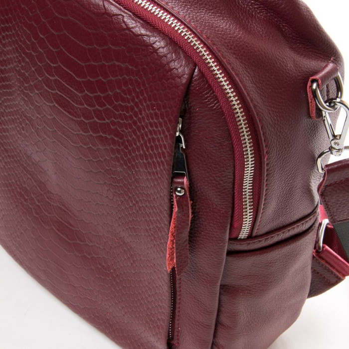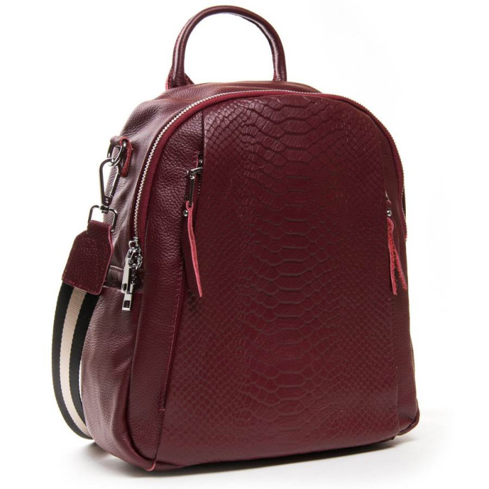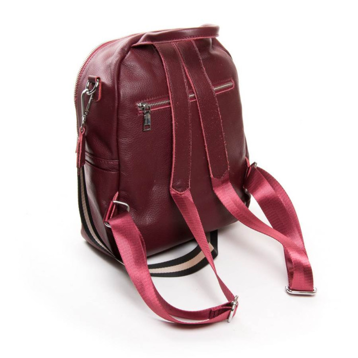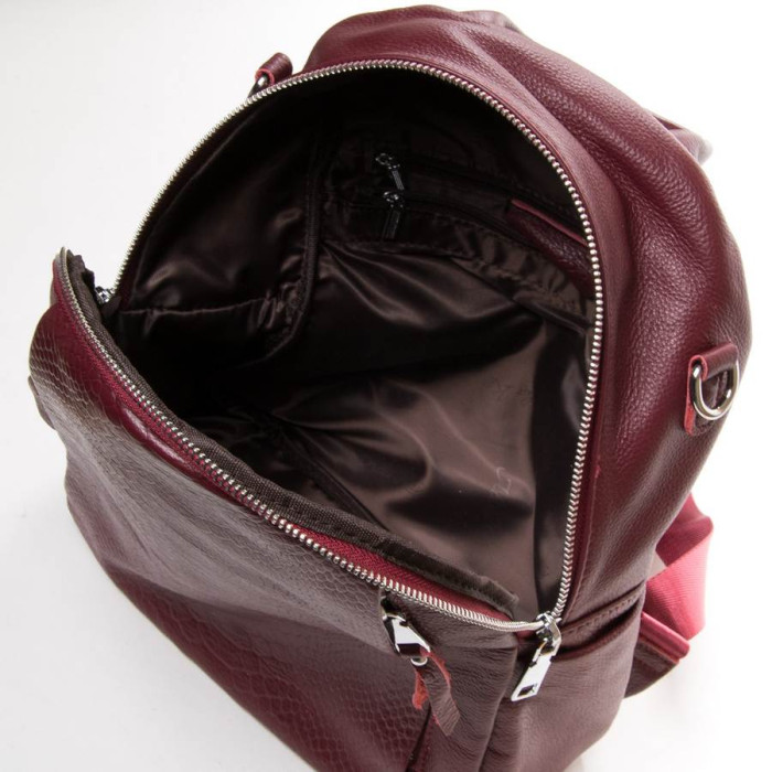 жіноча сумка-рюкзак Alex Rai. Виготовлена з натуральної м'якої шкіри. Можна носити на плечі на широкому ремені. Закривається на блискавку. Всередині знаходиться основне і додаткове відділення, розділене кишенею-перегородкою на блискавці, відкрита кишеня і кишеня на блискавці. Зовні рюкзака на фасаді і зворотному боці розташовані кишені на блискавці. На торцях рюкзака є невеликі відкриті кишені. Плечові лямки регулюються по довжині.