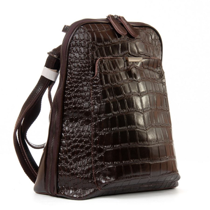 Жіноча шкіряна сумка-рюкзак Alex Rai. Виготовлена із натуральної щільної шкіри. Можна носити на плечових лямках або довгому ремені. Закривається на блискавку. Усередині знаходиться подвійне відділення розділене кишенею-перегородкою на блискавці, бічна кишеня на блискавці та відкрита кишеня. На фасаді розташована велика кишеня на магнітній кнопці, а на звороті - на блискавці. Жорстке дно.