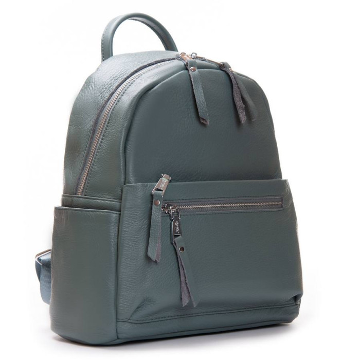 Жіночий рюкзак Alex Rai. Виготовлений із натуральної м'якої шкіри. Закривається на блискавку. Усередині знаходиться подвійне відділення, розділене кишенею-перегородкою на блискавці, відкрита кишеня та бічна кишеня на блискавці. На фасаді є дві кишені на блискавці, а на звороті одна кишеня. На торцях є невеликі відкриті кишені.