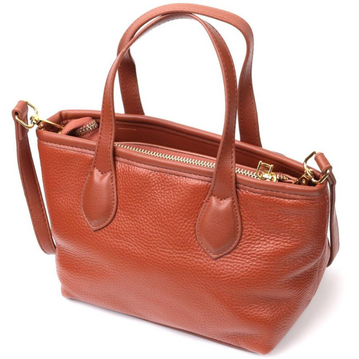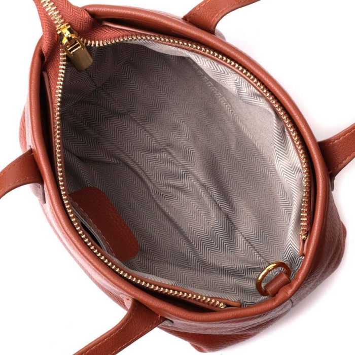 Оригінальна сумка з натуральної шкіри флотар, яка невибаглива у догляді та довго носиться. Аксесуар складається з одного основного відділення, потайної кишені на блискавці та кишені відкритого типу. Носити сумку можна в руці, на плечі і через плече, для цього є шкіряні ручки і шкіряний ремінь, що знімається. В аксесуарі використано якісну фурнітуру кольору жовтого золота. Шкіряна сумка – найкращий подарунок для будь-якої дівчини.