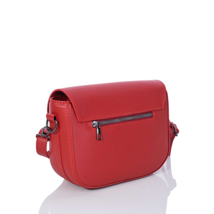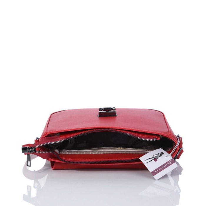 Жіноча сумка 68106 колір червоний, матеріал екошкіра високої якості схожий на натуральну шкіру. Сумка відкривається за допомогою застібки та замка. Усередині сумка на підкладці, має дві кишені: відкриту та на застібці. Зовні є кишеня для дрібних предметів. У комплекті є плечовий ремінь, який регулюється під різну довжину, що дозволяє носити сумку як кросбоді. Максимальна довжина плечового ременя 135 см.