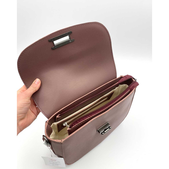 Жіноча сумка 68117 колір ліловий з екошкіри високої якості (матеріал схожий на шкіру). Сумка відкривається за допомогою замка і блискавки. Всередині на підкладці, має дві кишені: відкрита і на блискавці. Зовні є кишеня для дрібних предметів. Є Плечовий ремінь, який регулюється під різну довжину, максимальна довжина плечового ременя 135 см.