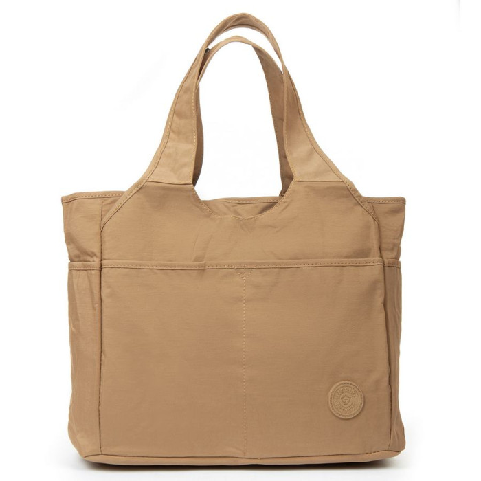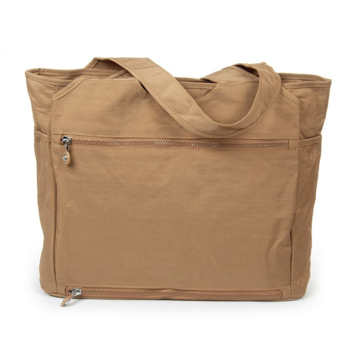 Жіноча сумка Jielshi. Виготовлена з водовідштовхувального текстилю. Три відділення: центральне закривається на блискавку. а бічні магнітні кнопки. Всередині центрального відділення є велика бічна кишеня на блискавці та відкрита подвійна кишеня. На фасаді та торцях сумки розташовані відкриті кишені. На звороті знаходиться одна містка кишеня на блискавці і одна кишеня з герметичною підкладкою.