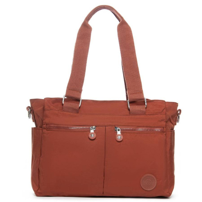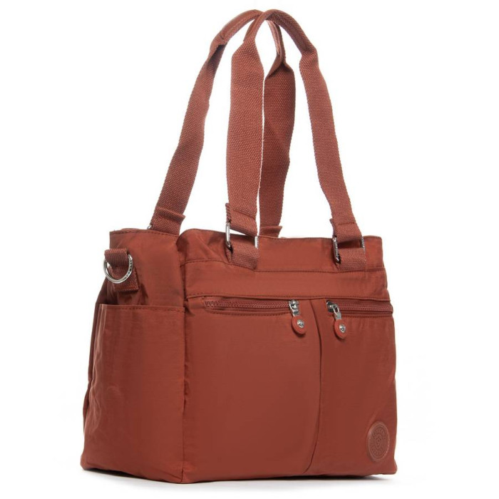 Виготовлена з водовідштовхувального щільного текстилю. Три відділення: центральне закривається на блискавку, а бічні на магнітну кнопку. Усередині центрального відділення знаходяться велика бічна кишеня на блискавці і відкрита подвійна кишеня. На фасаді і зворотному боці сумки знаходяться кишені на блискавці. А на торцях є відкриті невеликі кишені.