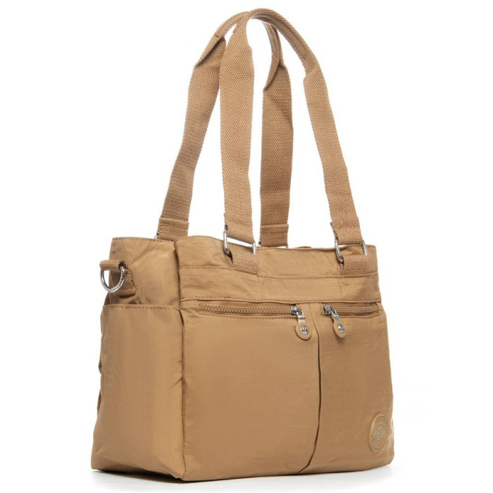 Виготовлена з водовідштовхувального щільного текстилю. Три відділення: центральне закривається на блискавку, а бічні на магнітну кнопку. Усередині центрального відділення знаходяться велика бічна кишеня на блискавці і відкрита подвійна кишеня. На фасаді і зворотному боці сумки знаходяться кишені на блискавці. А на торцях є відкриті невеликі кишені.