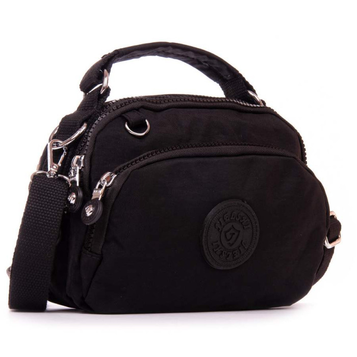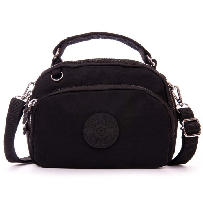 Жіноча сумочка крос боді. Виготовлена з водовідштовхувального текстилю. Два відділення, що закриваються на блискавку. Усередині є бічна кишеня на блискавці. На фасаді та на звороті знаходяться місткі кишені на блискавці.