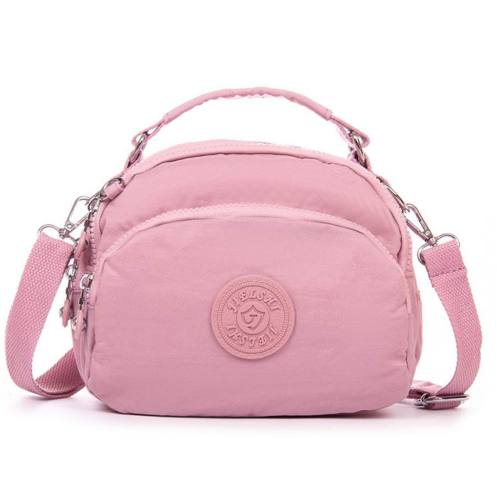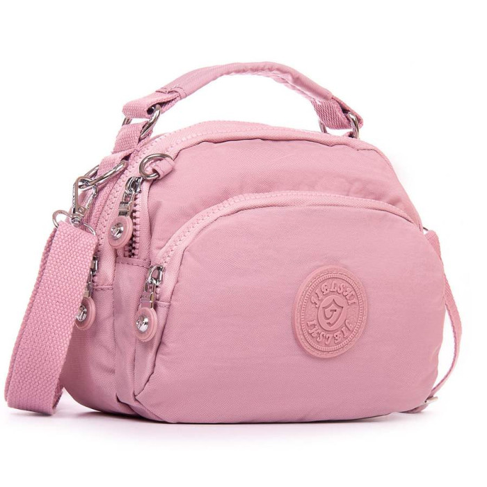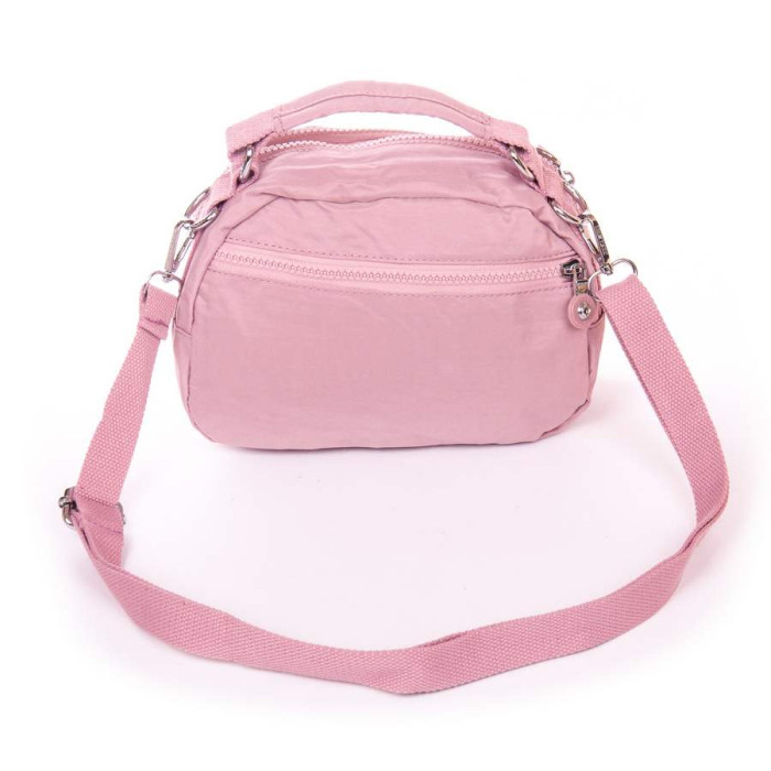Жіноча сумочка крос боді. Виготовлена з водовідштовхувального текстилю. Два відділення, що закриваються на блискавку. Усередині є бічна кишеня на блискавці. На фасаді та на звороті знаходяться місткі кишені на блискавці.